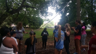 For the outdoor ropes course, sponsored by Summit, we were divided into teams of 15 and embarked on our quest of trying to get one person across a zipline. Initially, I was uncomfortable with the idea of showing off my not so athletic chops to a bunch of girls I didn’t know; but we all supported each other and worked through it. And suddenly I wasn’t so intimidated anymore. I knew if we could conquer the ropes course together, then we could most certainly work and live together, and maybe even conquer freshman year.