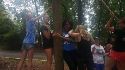 The Summit Challenge Course was part two of our agenda on Thursday, and I think it’s safe to say that it was the ultimate team-building exercise. Putting groups of girls together who, for the most part, have never met one another, and asking them to perform various tasks, from lifting one another in order to shimmy through tight spaces in a man-made spider web, to leading each other blindfolded across wooden planks, is quite the ice breaker. Through many laughs, challenges, and brainstorms, girls of the WLP got to know each other better in two hours than we could’ve imagined, and had fun all the while.