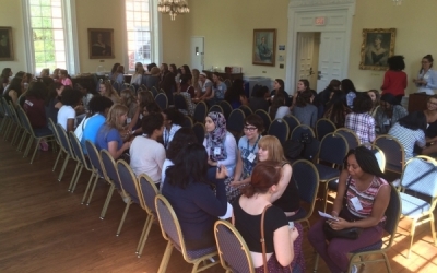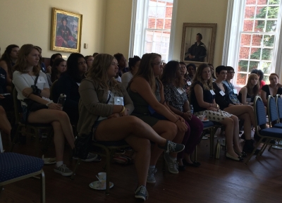 After a full day of discussion, team-building, and history, a poolside barbecue was the perfect was to way to end day one. On Thursday night, the WLP congregated at the Mount Vernon pool to enjoy an evening of burgers, hotdogs, swimming, and lounging, while getting to interact with faculty and girls from all cohorts. We can all agree that day one of the Women’s Leadership Program orientation was a success, and after hanging poolside as the sun went down, we were ready to take on day two."